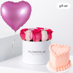 Make your anniversary truly special with our Petite Blush Roses Hatbox, featuring a graceful mix of pink, purple, and fuchsia roses. Paired with a charming bento cake and a celebratory balloon, this elegant gift set is a beautiful way to express your love.