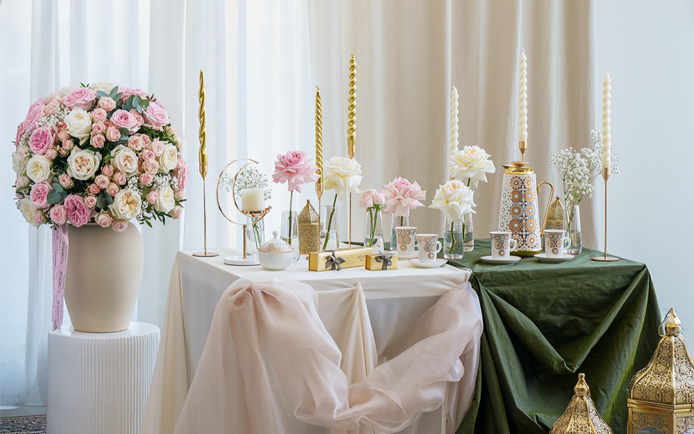 Dina Almalik, Marketing Manager at UAE’s leading online florist Flowers.ae has just the right tips and tricks on how to create the perfect pairing of flowers for your centrepiece, to your menu for the evening. We are adding some floral settings to your Ramadan! Some of the most charming moments with friends and family during the month of Ramadan revolve around the time spent together around the dining table at dusk and dawn, sharing delectable meals made with love and your guests, family, and friends in mind. While curating the perfect menu for Suhoor and Iftar gatherings is a task with the most fruitful results, every dining table looks a lot more vibrant and inviting with a beautiful floral arrangement as the centerpiece.