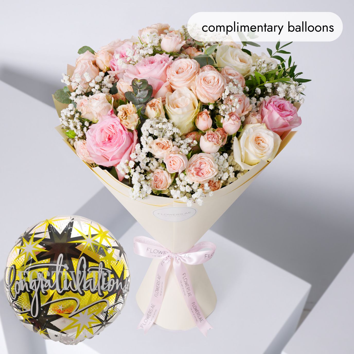 This arrangement includes a Complimentary Congratulations Balloon 1pc.